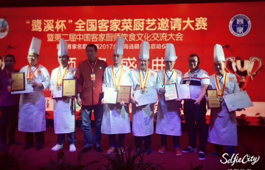 经过29日一整天的激烈角逐,最终由来自鹭溪的客家菜总厨以一道“四星望月”拔得头筹,“鹭溪大鱼头”“香煎河田鸡”获得二等奖,“金瓜焗竹荪”“客 家擂茶鸡”“盐水湖鸭”获得三等奖,获得优异成绩的前六名选手,也将获邀参加 2017 年10 月在香港举办的“美味客家名厨18 强2017 全球海选”总决赛。