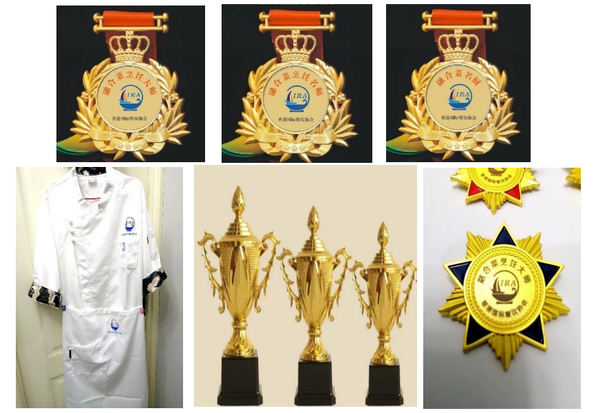 三、奖项设置融合菜烹饪大师、名师、名厨(刺绣防油服装围裙、金牌、荣誉证书、奖杯、金刻勋章)