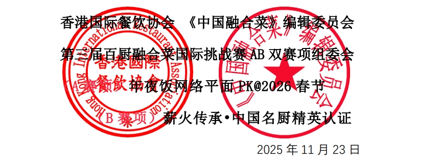 PK@2026 春节 (B 赛项)薪火传承•中国名厨精英认证赛。