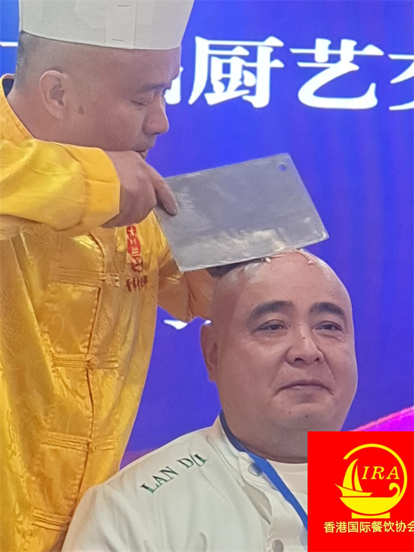 功夫厨王彭斌大师展示绝技”气球和头顶切肉丝“